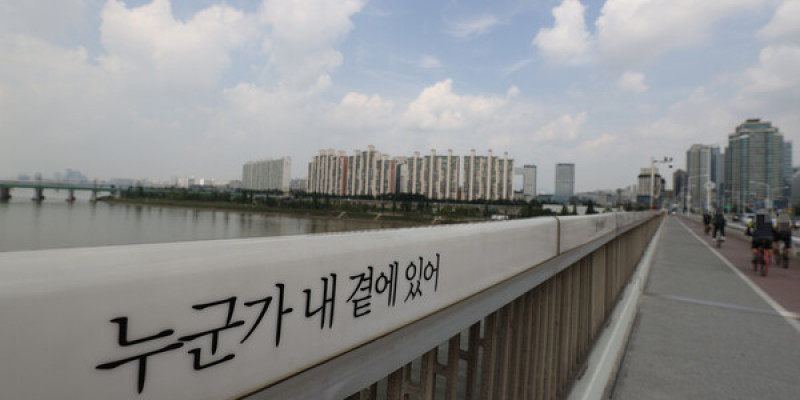 서울 한강 한강대교 보도 난간에 자살예방 문구가 새겨져 있는 모습. (사진출처=연합뉴스)