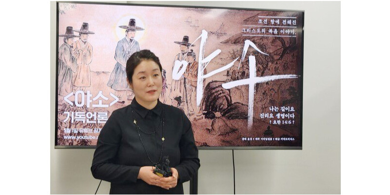 지난 24일 열린 영화 \'야소\' 기자간담회에서 영화 제작 배경을 설명하고 있는 윤진 감독.ⓒ데일리굿뉴스