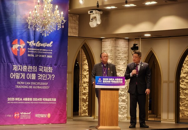 '2025 WEA 서울총회 프리서밋 국제심포지움'이 16일 서울 여의도 CCMM빌딩에서 열렸다. 이번 심포지움에는 세계 복음주의 리더들과 한국교회 지도자들이 참석해, '제자훈련의 국제화, 어떻게 이룰 것인가'를 주제로 제자훈련의 방향성을 논의했다.