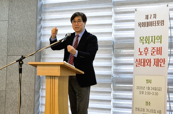목회데이터연구소(목데연·지용근 대표)는 24일 서울 종로구 연동교회 가나의 집에서 '목회자의 노후 준비 실태 조사 및 제안' 포럼을 열었다. 이날 발표는 목회데이터연구소가 지난해 8월 20일부터 나흘간 담임목사와 부목사 각각 250명을 대상으로 온라인 조사한 결과를 바탕으로 했다.