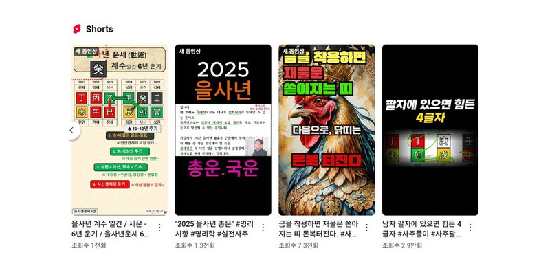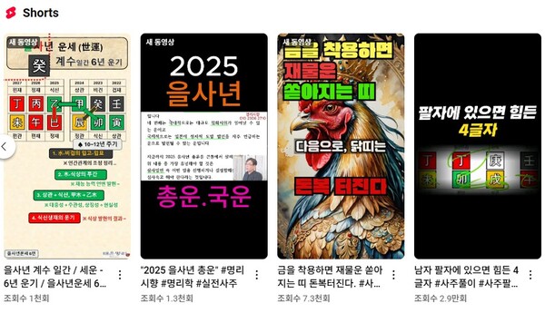 유튜브에서 쉽게 찾아볼 수 있는 2025년 신년 운세 콘텐츠.                     (유튜브 캡처)