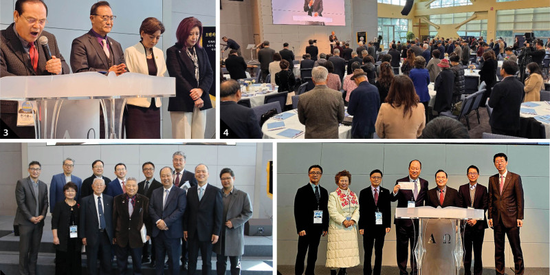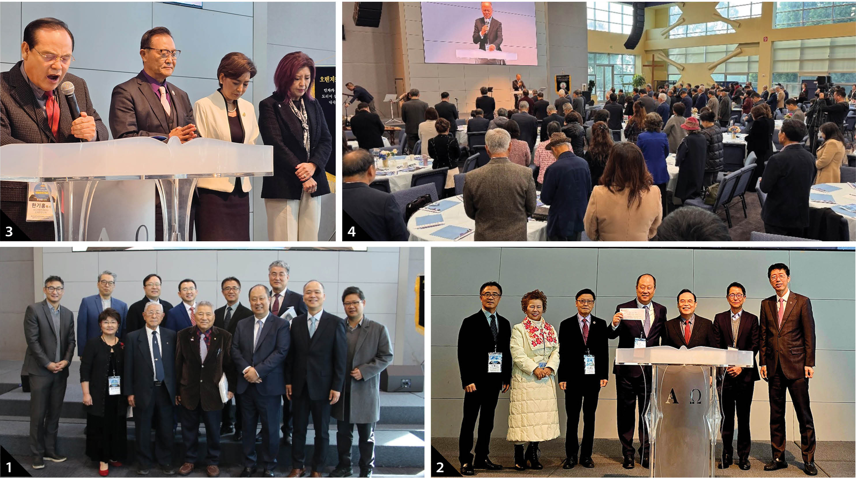 1. 은혜한인교회 한기홍목사가 오렌지카운티에 지역구를 둔 정치인들을 소개하고 의정활동을 위해 축복기도를 인도했다. 가주상원에 한인 최초로, 최고령으로 당선된 최석호의원(81세), 영 김 연방하원의원 (3선, 하원 외교부 동아태 소위원장), 그리고 부에나파크 조이스안 시장이 기도하고 있다. 2. OC교협 이창남목사의 사회로 진행된 제11차 OC기관 및 단체장 초청 연합조찬기도회(왼쪽사진), 3. 준비위로 섬긴 관계자들이 기도회를 끝내고 기념 촬영을 하고 있다. 앞줄 오른쪽부터 정성범목사(미디어분과), 이창남목사(회장), 한성준집사(평신도부회장), 양금호목사(이사회), 양문국목사(연합회 초대회장), 윤우경권사(연합회 증경회장 겸 홍보위원장), 정우영목사(서기), 이원석목사(OC목사회 증경회장, 구제사역분과), 최국현목사(부회장), 조진용목사(총무), 신용집사(연합회증경회장, 평신도분과), 심상은목사(교협 증경회장, 총무이사), 4. 지난 12월 송년회에서 약정됐던 선교사 자녀를 위한 추가 장학금이 조찬 기도회 시간에 전달됐다. 은혜한인교회 한기홍목사 (오른쪽서 세번째)와 OC상공회의소 팀 박 이사장(두번째), 윤 만 회장(맨 오른쪽)이 1만5천불을 전도회연합회측(왼쪽부터 신용 직전회장, 민김 직전 이사장, 김도영 이사장, 한성준회장)에 전달했다.