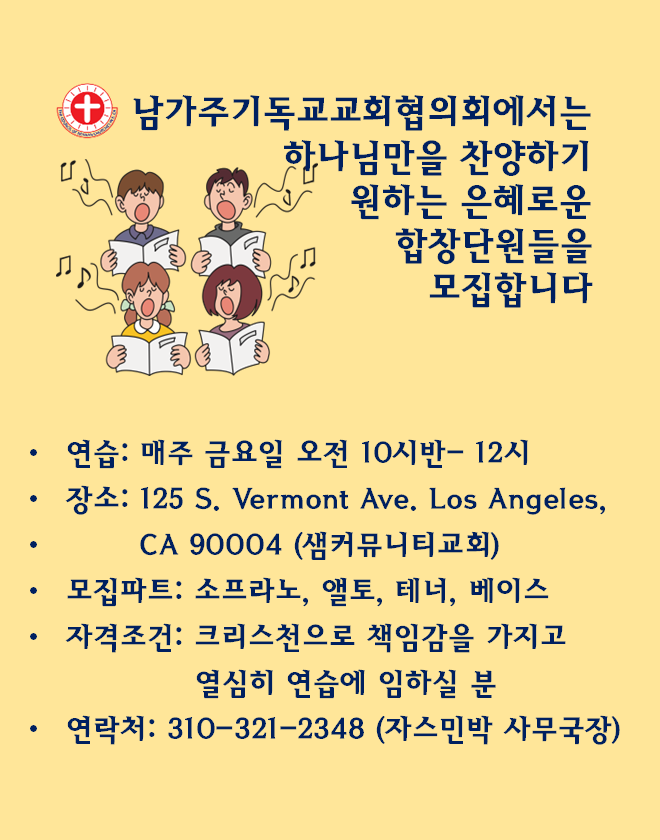 남가주기독교교회협의회 창단 앞두고 합창단원을 모집 > 미주교계뉴스