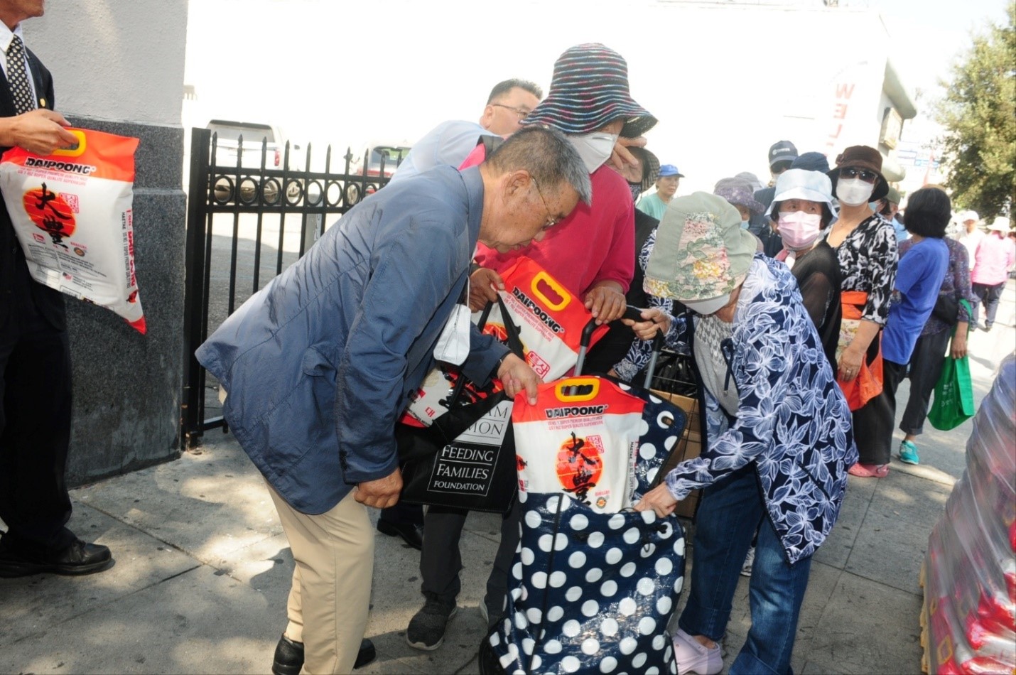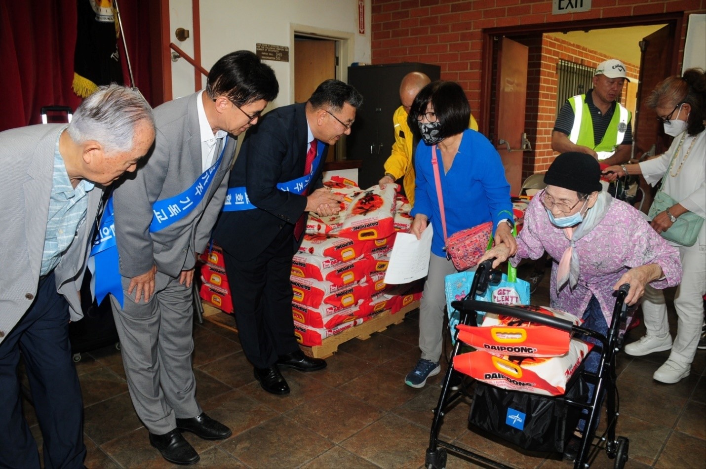 시작전부터 길게 늘어선 어르신들은 저마다 캐리어를 준비해 한포대씩 담아가기도 했으며 별도로 마련된 위생관련 선물들도 전달했다. 이번 행사를 위해 샘커뮤니티교회 성도들과 남교협, 남가주장로협 관계자 등이 적극 협조했다.