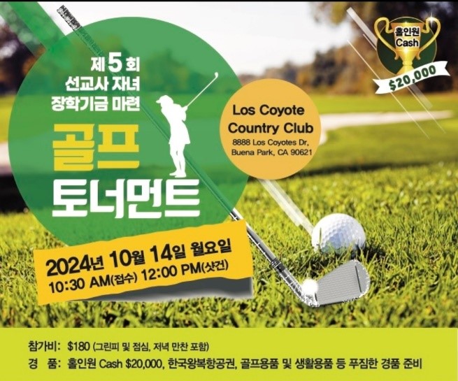 [미주교계뉴스] 10월14일(월)선교사자녀장학기금마련 골프대회 열린다