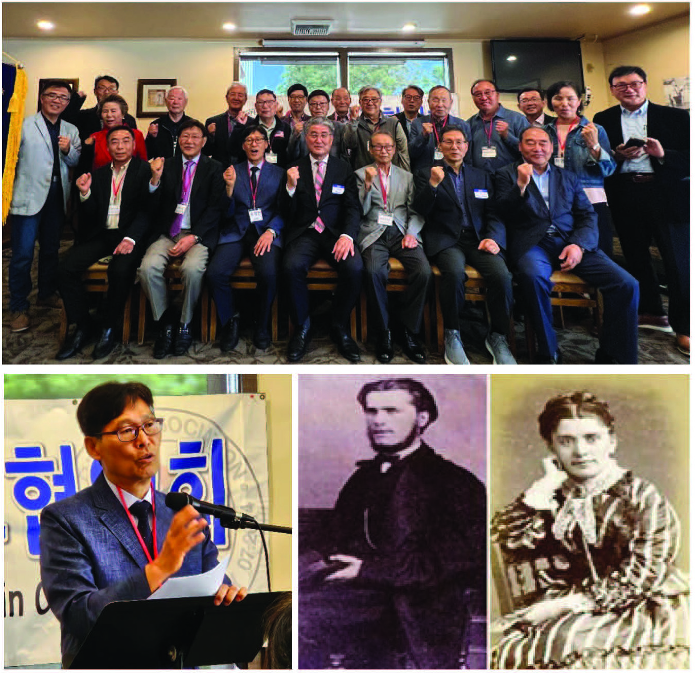 세미나를 마친 후 참석자들이 기념 촬영을 하고 있다(사진 위), 영국하노버교회에 2013년 한인최초 목회자로 부임하여 담임하고 있는 유재연목사가 OC장로협의회가 주최한 오찬 세미나에서 말씀을 전하고 있다. Photo by People & Society (아래 왼쪽 사진), 조선 최초 순교 외국인선교사 토마스목사와 아내 캐롤라인은 1865년, 27세에 대동강변에도착하자마자 조선인들에 의해 사망했다.