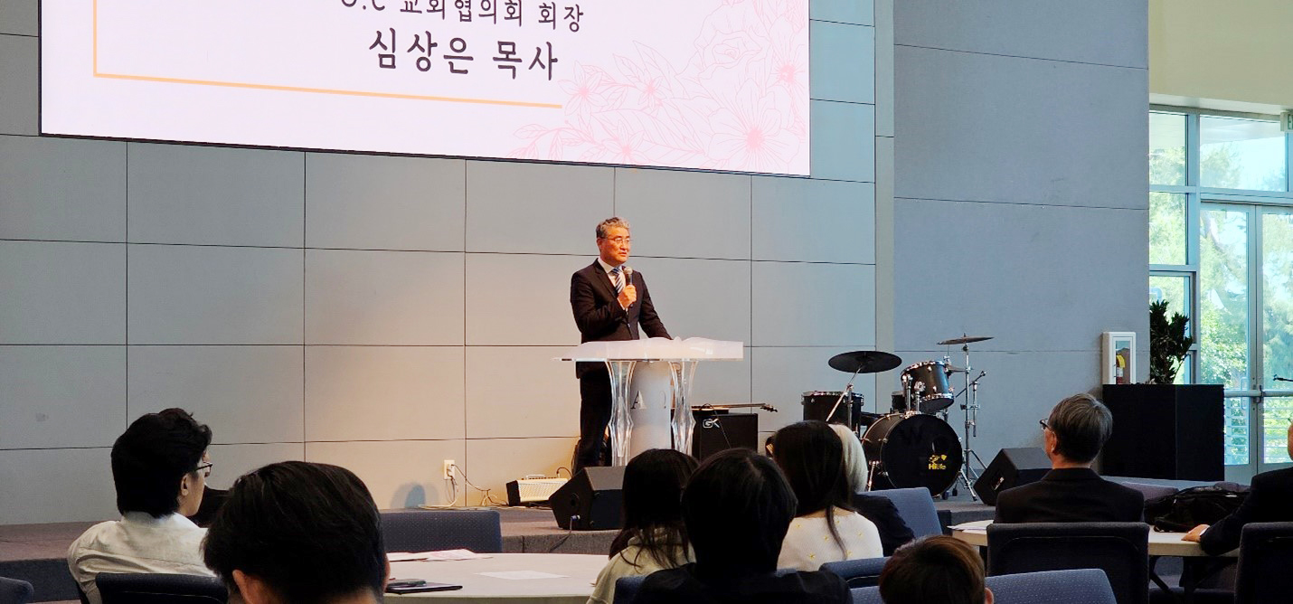 축사를 전하고 있는 OC기독교교회협의회 회장대행 심상은 목사