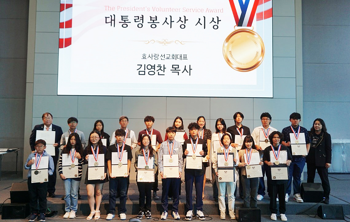 한편 시상에는 심상은목사와 이원선 목사회회장, 미셀 박 스틸 연방하원의원 조셉 다이얼 수석보좌관, 서준석 효사랑선교회 이사장등이 나섰고 수상자 학생들에게는 대통령 봉사상도 전달됐다.