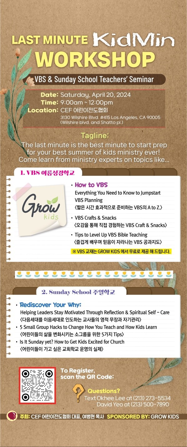 2024년 Seminar 는 two tracks으로 나누어 VBS준비와 교회학교 교사 교육을 중심으로 짧지만 실제적인 프로그램으로 진행 된다고 밝혔다.