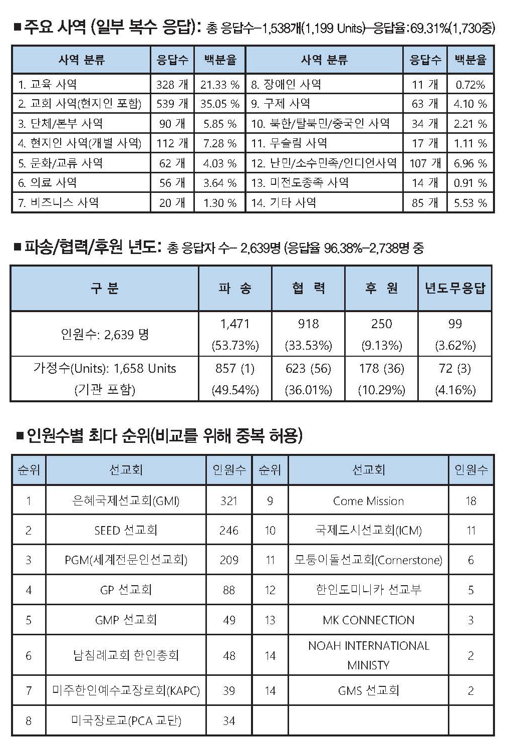KWMC, "美한인교회 선교사 파송 현황" 첫조사 발표 > 미주교계뉴스