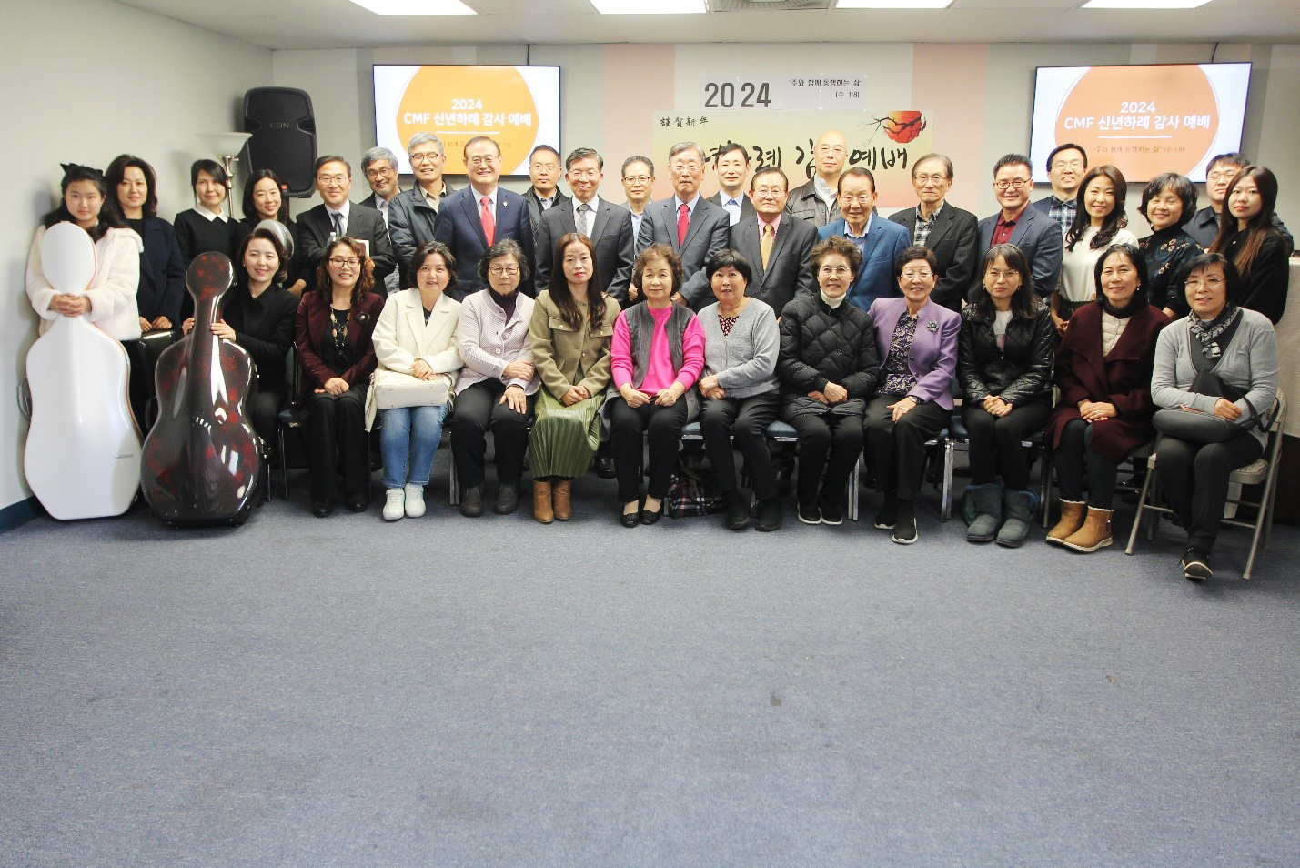 지난 1월 6일 토요일 12시에 CMF 선교원 회관에서 진행된 이번 신년하례 감사예배는 음악 전문인들로 편성된 음악인들의 특별 연주와 더불어 말씀과 찬양을 통해서 하나님께 영광돌렸다.