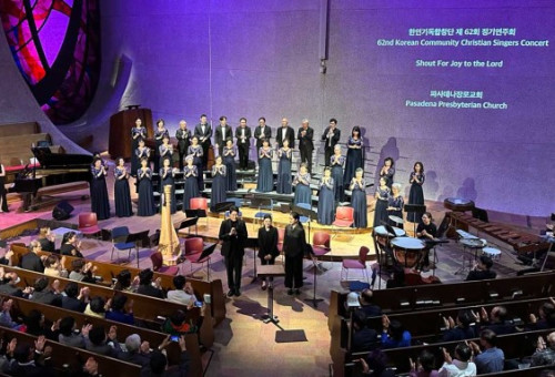 한인기독합창단(단장 김은영, 지휘 제갈소망)의 제62회 정기 연주회가 지난 11월 5일(주일) 저녁 패사디나 장로교회에서 “Shout for Joy to the Lord”란 주제로 성황리에 개최됐다. 제갈소망 지휘자는 “이번 정기연주회는 하나님을 영화롭게 하며 하나님을 즐거워하길 간절히 사무하는 40여명의 한인기독합창단원들과 게스트아티스트 및 오케스트라 단원들이 정성과 열정을 다해 준비했다”며 “이 아름다운 우주 만물의 창조주 하나님을 노래와 시로 찬양했던 다윗처럼 우리 모두가 마음껏 기뻐 찬양하는 시간이 되기를 소망한다”고 말했다.  합창단 명예단장인 백경환 목사(씰비취한인합창단)는 “한인기독합창단이 39년 전에 하나님을 찬양하기 위해서 창단되었다”며 “하나님께서 이사야 43장 21절 ‘이 백성은 내가 나를 위하여 지었나니 나의 찬송을 부르게 하려 함이니라’을 통해 말씀하신것처럼 오늘 참석한 모든 이들이 하나님을 찬양하는 시간이 되기를 바란다”고 밝혔다. 김준식 목사(남가주샬롬교회) 기도로 시작된 정기연주회는 정혜진 부지휘자의 지휘로 비발디의 ‘Magmificat Rv610’, ‘그는(창세기-요한계시록)’을, 부지휘자 이희성의 지휘로는 ‘글로리아’를 연주했고 ‘The Old 100th Psalm Tune’를 회중들과 함께 찬양했다.