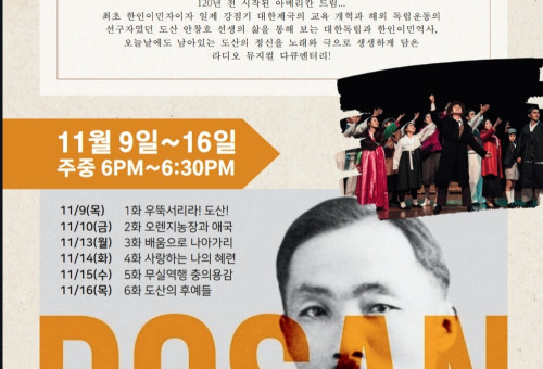 미주복음방송(사장 이영선목사)이 11월 9일(목요일)부터 16일(목요일)까지 오후 6에 30분 간에 걸쳐 ‘도산 안창호, 오늘을 살다’ 라디오 드라마를 방송한다고 밝혔다. 이번 프로그램은 특별 기획 프로그램으로 기획되어 한국 과학기술정보통신부의 방송통신 발전 기금을 받아 제작된 특별기획 뮤지컬 다큐멘터리로 총 6편 시리즈가 방송된다. '도산, 오늘을 살다'는 한미동맹 70주년, 미주한인이민 120주년이 되는 해를 기념하여, 최초 한인이민자이자 일제 강점기 대한제국의 교육 개혁과 해외 독립운동의 선구자였던 도산 안창호 선생의 삶과 활약을 조명하며, 무대 예술인 그룹 '시선(클라라 신 대표)'의 창작뮤지컬 '뮤지컬 도산'을 라디오 뮤지컬로 재연출하고, 도산의 정신을 이어받아 후손에게 잘 전하고 오늘의 도산을 살아가는 후예들의 목소리를 생생한 현장인터뷰로 담은 라디오 다큐뮤지컬이다.본 프로그램을 통해 1902년 미국 샌프란시스코로 건너와 초기 한인 이민들의 미주 정착을 이끌고 전국적으로 한국인들에게 가장 중요한 애국지사 중 한 명으로 받아들여지고 있는 도산 선생의 바른 정신과 가르침을 전하여, 민족정체성이 약한 이민2,3세대에게 애국정신과 뿌리에 대한 자긍심을 가지도록 하는 기회가 될 것이다.미주복음방송 사장 이영선 목사는 보도자료를 통해 "실제 이민 120주년 안에 가장 바른 가르침을 주신 도산 선생의 정신 중 '애기애타'의 정신의 실천은 기독교의 디아코니아, 나눔과 섬김의 실천과 맞닿아 있다. 특별히 '정직과 통합'은 혼란한 현대사회 속에도 꼭 필요한 덕목이자 귀한 가르침으로, 이것들이 이민사회의 젊은 세대들에게 잘 유지될수 있다면 한인커뮤니티가 주류사회에서 중심적인 역할을 하는 동포사회가 될 거라 생각한다." 라고 밝혔다. '도산, 오늘을 살다'는 2018년 11월 9일에 캘리포니아 주에서 공식 지정된 '도산 안창호의 날'인 2023년 11월 9일 '도산 안창호의 날'에 첫 방송되며, 2024년 1월 13일 미주 한인의날, 3.1절, 8.15광복절 재방송되고 미주복음방송 홈페이지 (www.kgbc.com)에서 다시 청취할 수 있으며, 추후 유튜브에 재구성된 영상 컨텐츠가 업로드되어 시청할 수 있다. 이번에 제작된 라디오 드라마의 출연진은 도산 안창호 역에 테너 최원현 등 뮤지컬 도산에 출연한 대부분의 배우들이 동참했으며 뮤지컬 무대에 올려졌던 실제 노래들이 다수 포함됐고 나레이션 역시 첫공연에 출연했던 이동진목사(성화장로교회)와 윤우경아나운서(방송인, 본사 총괄 본부장)이 제작에 직접 참여했다. 또한, 그룹 시선은 2024년 3.1만세운동과 대한민국 임시정부 수립 105주년, 그리고 뮤지컬 도산 세계 초연 5주년을 맞이하여 올려질 뮤지컬 도산 시즌 4에 함께 할 배우와 스탭을 모집한다고 밝혔다. 지원자는 이력서와 사진을 Seasuntag@gmail.com 으로 보내면 된다.
