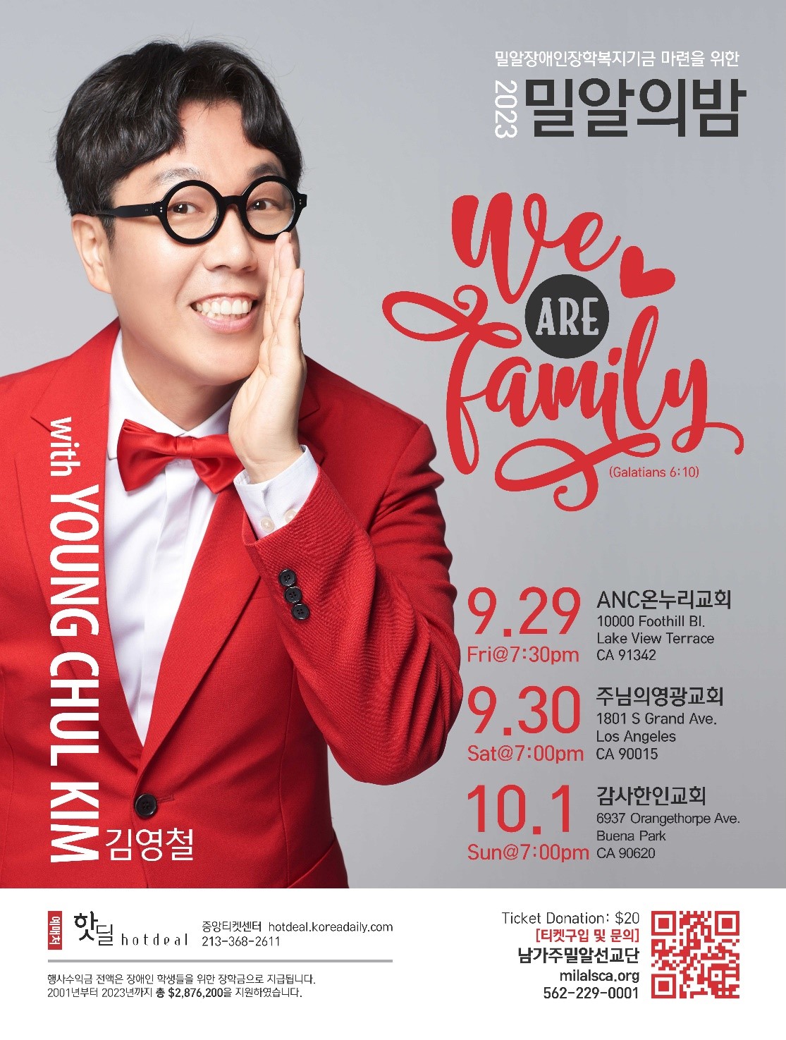 2023 '밀알의 밤'은 오는 9월 29(금)부터 10월 1(주일)까지 사흘동안 ‘우리는 가족'(갈라디아서 6:10)이란 주제로, 한국의 유명 코미디 예능 프로에서 활발하게 활동하며 큰 인기를 누리고 있는 개그맨 '김영철'을 메인게스트로 초청했다.