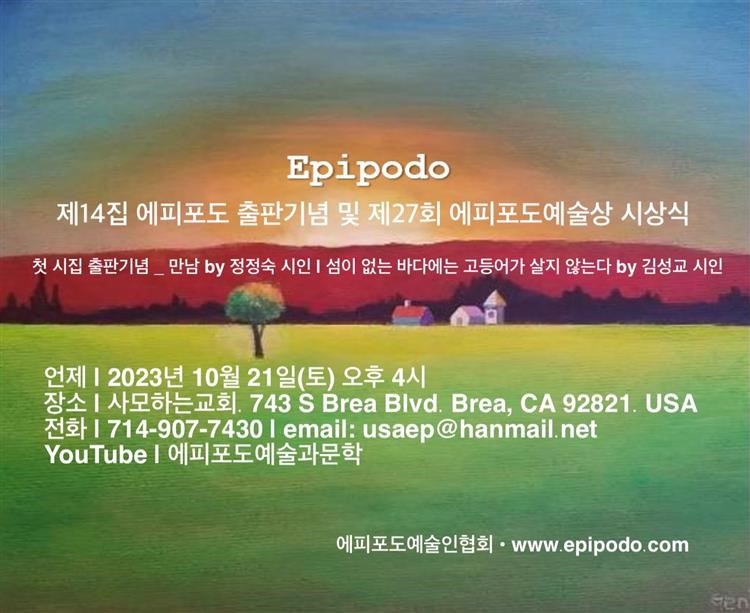 에피포도예술과문학(대표 백승철 목사)이 주관하는 14회 에피포도 수상집 ‘모서리에서 미끌어지는 하나님의 마음을 읽어 보라’ 출판기념과 제27회 에피포도예술상 시상식, 에피포도 창립 28주년 기념식이 한국과 미국에서 동시에 열린다.