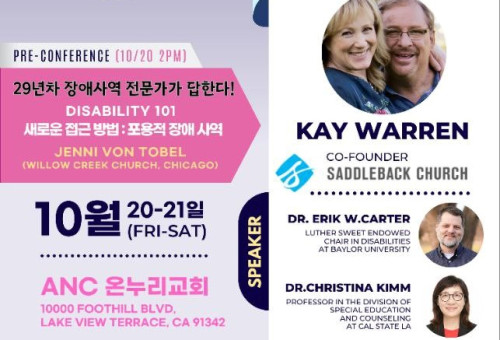 미주복음방송(사장 이영선 목사-사진 오른쪽)가 ANC온누리교회(담임 김태형 목사-사진 왼쪽)와 공동주최로 오는 10월 20일부터 21일까지 ‘차세대 리더 양성’주제로 2023년 한인교회 발달장애 컨퍼런스를 개최한다고 밝혔다.10월 20일 오후 2시 ANC온누리교회 본당에서 열리는 Pre-컨퍼런스 ‘Disability 101 : 포용적 장애 사역’에는는 지지플레이 하우스 디렉터 등 30여년동안 장애인과 그 가정을 위한 사역에 몸담아 온 제니 본 토벨(Jenni Von Tobel)이 교회내 포용적인 장애사역의 경험을 토대로 한 실질적인 방법과 전략을 공개하게된다. 장애사역의 시작부터 운영관련, Q&A시간도 마련되며 전체 컨퍼런스 참가비 외 별도 참가비40불로 저녁식사까지 제공된다.이어서 오후 6시 부터 메인 컨퍼런스가 시작되며 이영선 목사(미주복음방송 사장), 김태형 목사(ANC 온누리교회 담임), 에릭 카터 박사(베일러 대학교)가 개회연설로 나선다.기조연설에서는 새들백교회(Saddleback Church)의 공동창립자이자 릭 워렌(Rick Warren) 목사의 아내인 케이 워렌(Kay Warren) 사모의 설교와 함께 찬양과 예배의 시간이 있게되며 둘째 날인 21일에는 특수교육 전문가, 주류 교회 및 한인교계의 장애사역자 15인의 장애사역 전문가가 ‘차세대 장애사역 리더 양성’과 ‘포용성(Inclusion)’ 등 이외에도 전반적인 장애사역의 핵심이슈에 대해 패널토의와 함께 12개의 주제강연을 발표할 예정이다.한편, 이번 컨퍼런스는 전 미주 주류 교회와 한인 교계가 최초로 한자리에 모여 앞으로 장애사역의 나아갈 방향을 함께 논의하는 자리가 될 것이라는 큰 의미가 있으며, 동시통역 서비스를 지원할 계획을 세우고 있다. 이영선 목사는 “CDC(연방질병통제예방센터) 자료에 따르면 3~17세 사이 발달장애인은 약 17%에 이를 뿐더러  지속적인 증가 추세이기에 앞으로 교회가 좀더 포용적 마음가짐으로 장애인과 함께 해나가는 사역을 좀 더 고민하면서 이러한 필요를 이끌어 갈 수 있는 차세대 리더 양성이 정말 중요해진 싯점이다.”고 강조했다.이어서 강연자 제니 본 토벨은 “포용(Inclusion)이란 단순히 장애인을 초대하는 것으로 끝나는 것이 아니라  장애, 비장애, 모두가 함께 참여하는 사역을 창조해 내는 것이다. 29년의 경험을 토대로 장애사역에 관한 모든 질문을 답하겠다’고 독려했다.전체 컨퍼런스의 참가비는 개인 신청 시 $100, 교회 및 단체 신청 시 2인기준 $200로 추가 인원당 $50이 추가 되며, 대학생 및 신학생에게는 20% 할인하여 차세대 리더들이 많이 참여할 수 있도록 권하고 있다.참가신청은  9월30일까지이며, 8월 30일까지 신청시 참가비 전액 10% 할인 혜택도 있다.사역자, 봉사자, 신학생, 학부모 등 장애사역에 관심있는 분들 모두 참가할 수 있으며, 타주에서 참가를 희망하는 분들을 위해 숙박 옵션 및 셔틀을 준비할 것을 알려졌다.미주밀알선교단, 북미주개혁교회(CRC), 태평양 은행(PCB Bank), Friendship Beyond Border Inc.가 특별후원하였고 장애인 오케스트라 ‘디스어빌리티 오케스트라(This Ability Ochestra)’가 연주로 후원한다.한편 이번 한인교회 발달장애 컨퍼런스 관련 설명회가 오는 31일(목) 오전 11시에 미주복음방송 애너하임 본사에서 마련되며 관련 문의는 미주복음방송 기획실(714-484-1190. Ext.016)으로 하면 된다.