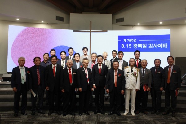 제 78주년 8.15 광복절 감사예배가 남가주교계 주최로 13일 오후 4시 30분에 나성영락교회에서 열렸다. 관계자들이 예배 후 기념 촬영을 하고 있다. (남가주교협 제공)