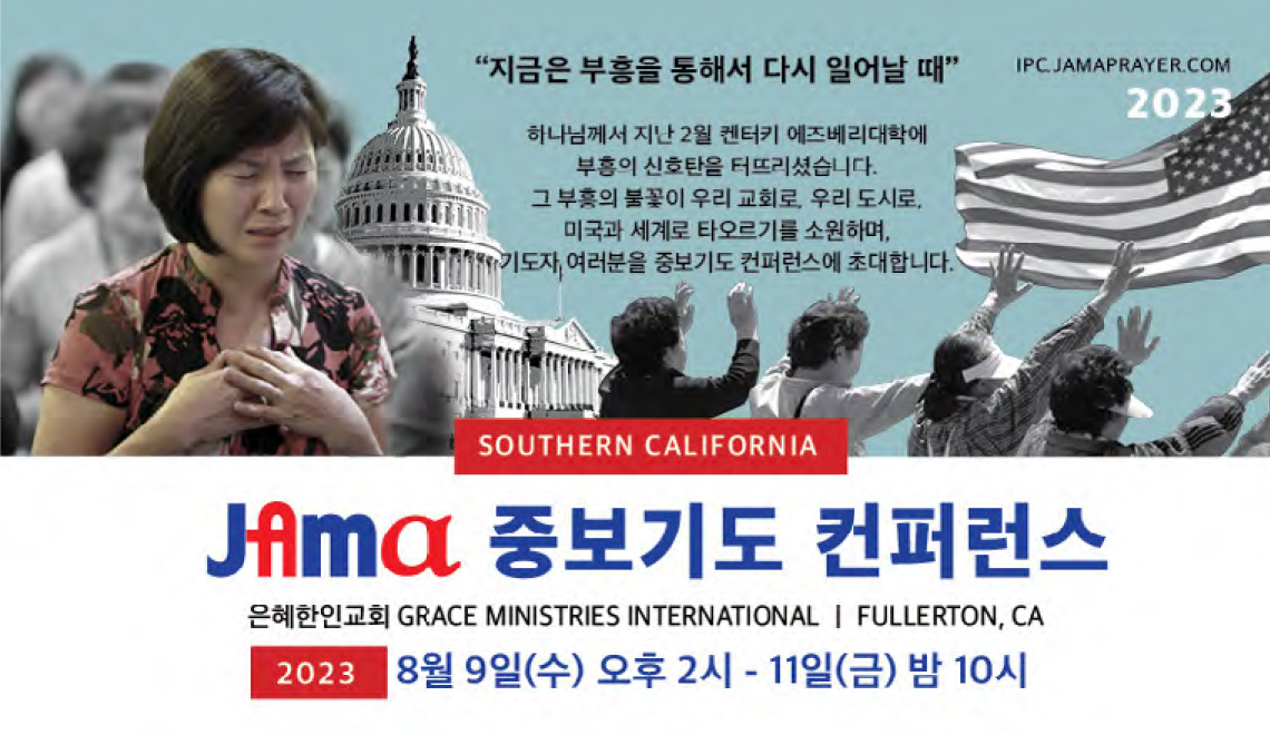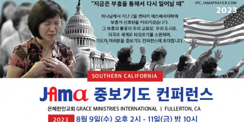 자마 글로벌(김춘근교수)가 주최 하는 나라를 위한 중보기도 컨퍼런 스가 다가오는 8월9일부터 11일까 지 은혜한인교회에서 개최된다. 이 번 컨퍼런스는 대면으로 개최되며 이미 지난5월부터 등록을 이미 시작 한 것으로 알려졌다.