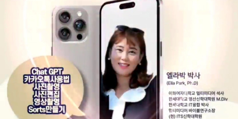 엘라박 박사는 이번 6월21일, 수요일 오후 2시에 시작해서 주 1회, 한달 여 동안 진행될 이번 스마트한 생활을 위한 스마트폰 강의를 통해 요즘 큰 관심을 받고 있는 챗GPT, 카카오톡 제대로 사용하는 법, 사진촬영과 편집, 영상촬영 등 다양한 스마트폰 사요법을 교육하게 된다고 밝혔다.
