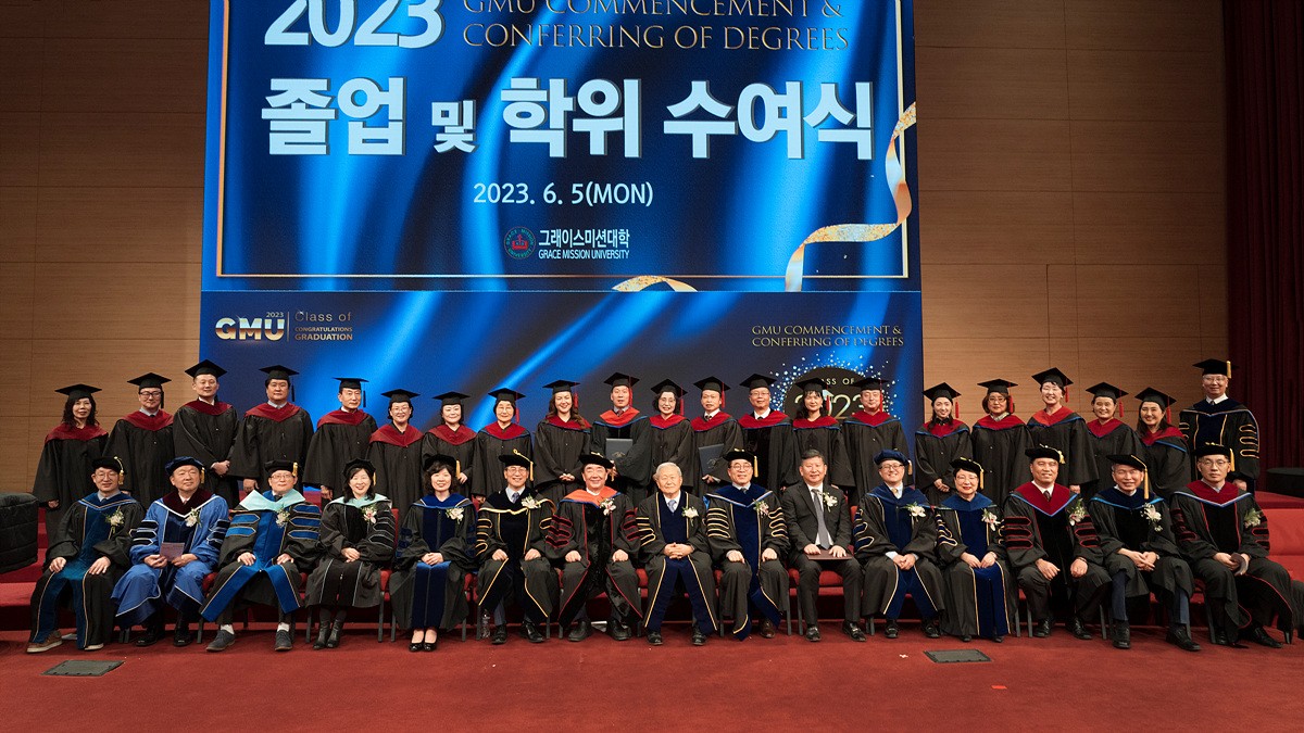 그레이스미션대학교(Grace Mission University, 총장 최규남 박사, 이하 GMU)가 지난 6월5일 (월)오후 7시 은혜한인교회 비전센터에서 2023년 졸업예배 및 학위수여식을 가졌다.