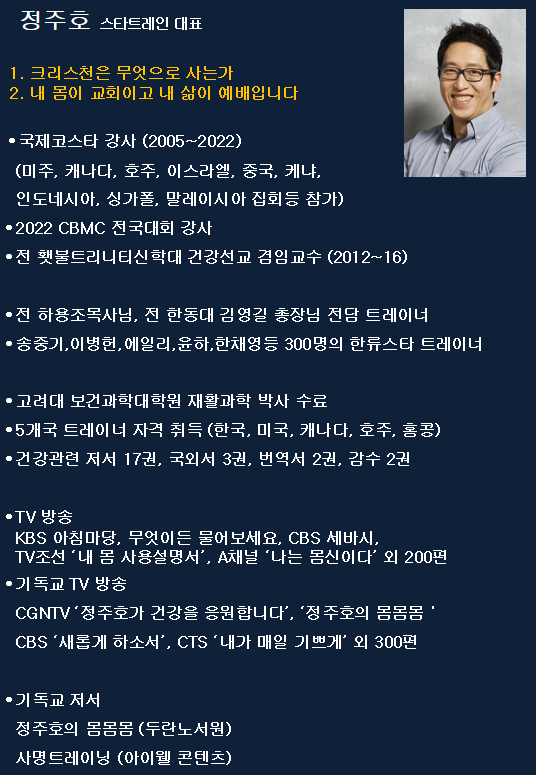 정주호트레이너의 자세한 일정문의와 초청을 원하는 단체는 press@christianherald.com 으로 하면 된다.