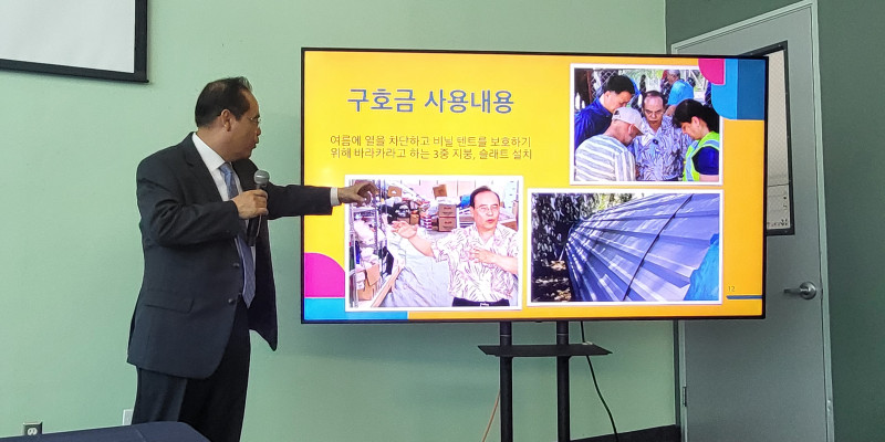 한 목사는 나머지4만7500달러는 후원 마을로 선정한4개 도시6개 마을의 어린이 여름학교 운영,이재민 구호품 지원을 위해 올해12월 말까지 지속적으로 사용된다고 보고했다.