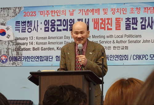 이우호 목사가 대표로 있는 아메리카연합재단이 한인이민 120주년을 맞아 감사예배를 드리면서 오리건 주 5선 의원인 임용근 의원의 자서전, “버려진 돌” 출판 감사예배를 지난 1월14일, 벨가든 소재 한인교회에 치루었다. 조헌영목사, 박성녀목사, 이우호목사가 공동 초청인으로 진행된 이번 예배는 지난 12월 21일, 오리건 주 포트랜드에서 첫 출판 예배를 드린후 남가주에서 인근 지역 리더십과 지인들이 참석한 가운데 열렸다. 조헌영목사의 사회와 오린건 주에서 방문한 오레곤 주 문인협회 김혜자회장, 달라스 한미애국기독인연합회 원관혁 장로 등의 축사, 전 대한민국국회의원 조웅규 의윈, 윤우경 총본부장의 축시낭송에 이어 한국어세계화재단 홍연숙 대표의 서평이 있은 후, 임용근의원 의 감사와 환영인사가 있었다. 조그마한 흔적’이 아니라 ‘큰 족적’을 남긴 임용근 전 의원은 1935년 12월 23일 경기도 여주에서 태어나 여주농업고등학교를 졸업한 뒤, 서울신학대학에서 종교문학사를, 오리건주 포틀랜드 웨스턴 에반게리컬 세미너리(Western Evangelical Seminary)에서 신학 석사학위를, 조지 팍스 대학 세미너리에서 인문학 박사학위를 취득했다. 미군부대 버스보이로 일하면서 미군의 구두닦이도 했고 1966년, 30대 중반의 나이에 빈손으로 미국행을 감행, 오늘에 이르렀다. 신학을 수학했기에 이민 초창기에는 임용근 의원이 아닌 임용근 전도사로 불렸다. 그 후 정치계 입문을 결심하고 오리건주 상원의원(3선·1992~2004)과 오리건주 하원의원(2선·2005~2009)을 역임한 바 있다. 임용근 의원은 인사를 통해 그러나 그렇게 탄탄대로였던 정치 생활 속에서도 시련은 있었다. 미 연방상원 공화당 후보로 당선(1998)돼 연방상원의원에 도전했으나 민주당 후보에게 패해 고배를 마셨다. 그러나 임 전 의원은 그러한 ‘실패’를 ‘실패’로 생각지 않고 ‘도전’이라 말한다. 그는 ‘실패’를 두려워해서 도전하지 않으면 ‘성공’도 없다고 잘라 말한다. 그러한 그의 도전정신이 이민 후배들에게 큰 귀감이 되고 있다. 임용근 전 의원은 올해로써 미국 나이로 88세로 미국 아세안공화당 공동의장(2004), 미국 차세대리더십 및 정치인 포럼 공동회장(2011), 오리건 한인상공회의소 창립 및 초대 회장(1980), 오리건한인회 회장(1986), 미주한인회 총연합회 총회장(1989~1990), 제2차 세계 한민족대회 대회장(워싱턴DC·1989), 미국 한인상공인총연합회 총회장(1989~1990), 제1차 세계상공인대회 대회장(서울·1990), 미 아시안 시민권자협회 의장(1990~1991), 세계 한인 정치인협의회 창설 및 초대 회장(2007~) 등을 지냈으며 2001년에는 대한민국 국민훈장인 “목련장”을 수상했다.