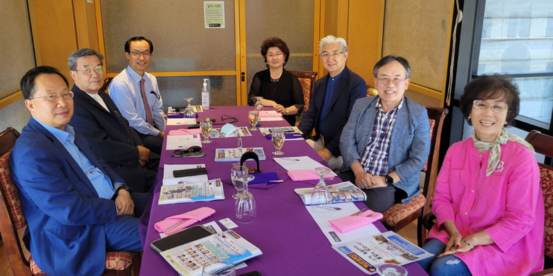 탈북 신학생들의 미국과 멕시코 비전트립을 준비하는 관계들이 모임을 갖고 있다. 왼쪽부터 시계방향으로 크리스천헤럴드 대표 이성우 목사, 큰빛감리교회 조현영 목사, 평화교회 김은목 목사, 크리스천헤럴드 윤우경 본부장, 미주성결교회 총무 김시온 목사, 기드온동족선교회 박상원 목사, 김수연 권사. 기독일보 제공