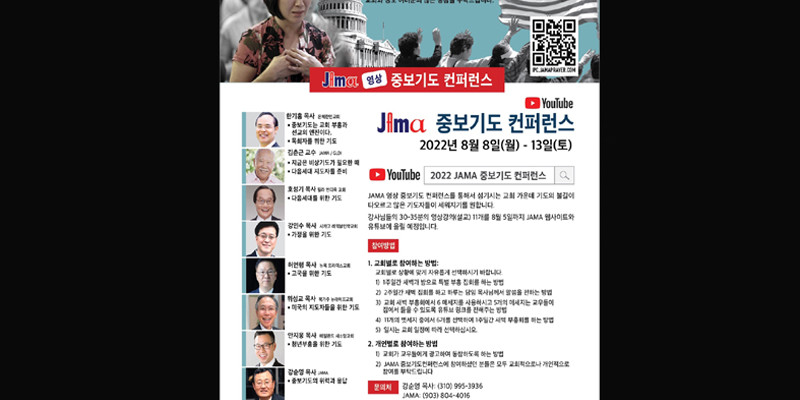 각 교회의 상황에 맞게 동영상과 담임 목회자의 설교를 적절하게 배합하면 되며 많은 한인 기독교 교인들이 기도에 동참할 수 있도록 유도해 달라고 당부했다. 내용은 유튜브에서 2022 JAMA 중도기도 컨퍼런스를 검색하면 확인할 수 있다. 문의 (310)995-3936, (903)804-4016.
