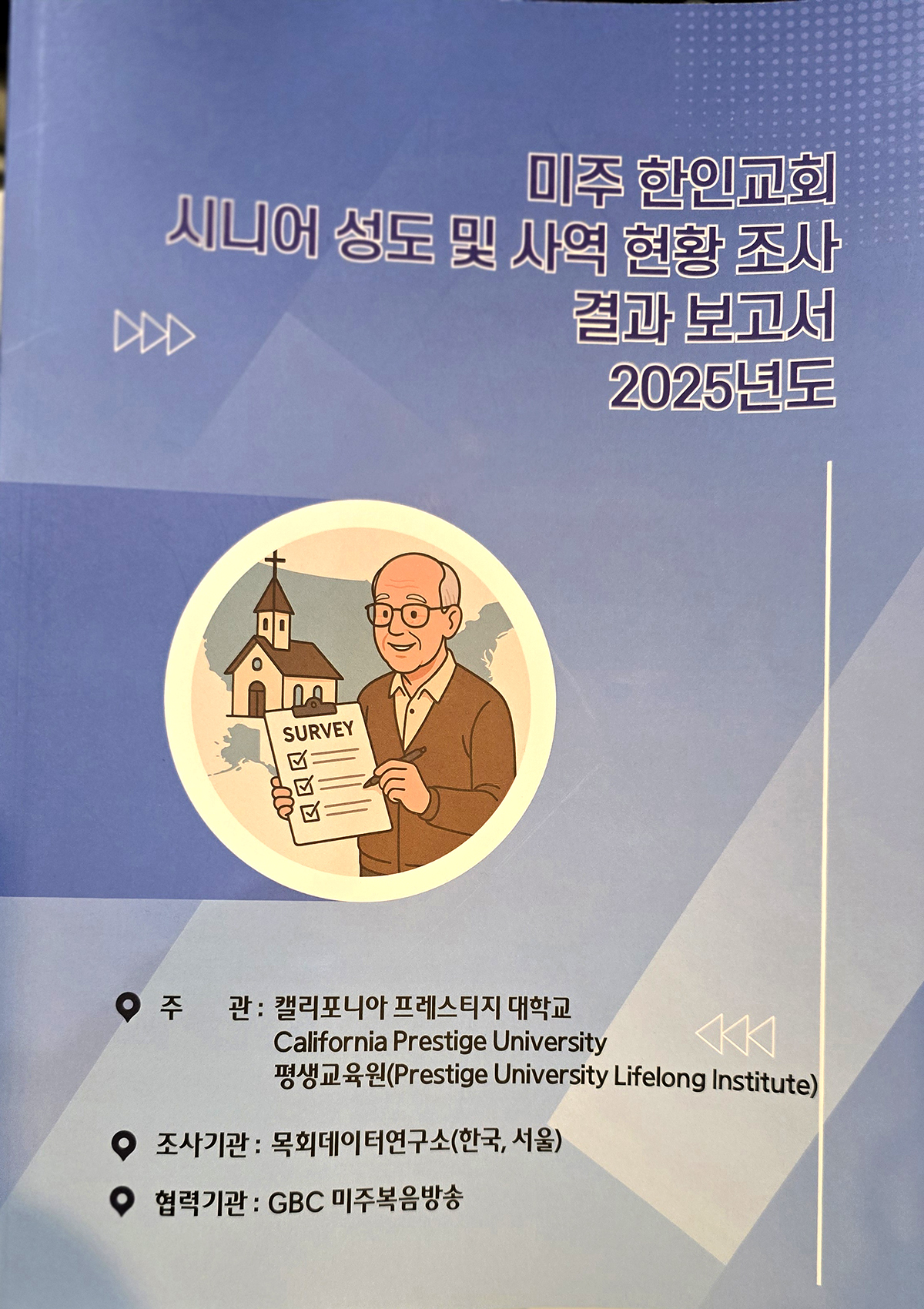 캘리포니아 프레스티지 대학교(전 미주장신) 평생교육원(원장 이성희 목사, 프로젝트 매니저 황성만 목사)은 미주 한인교회 시니어 성도들의 신앙과 각 교회내 사역 현황 파악을 위해 지난 2024년 12월 16일~ 2025년 2월 27일까지 한국목회데이터연구소와 함께 설문조사를 실시한 바 있다.