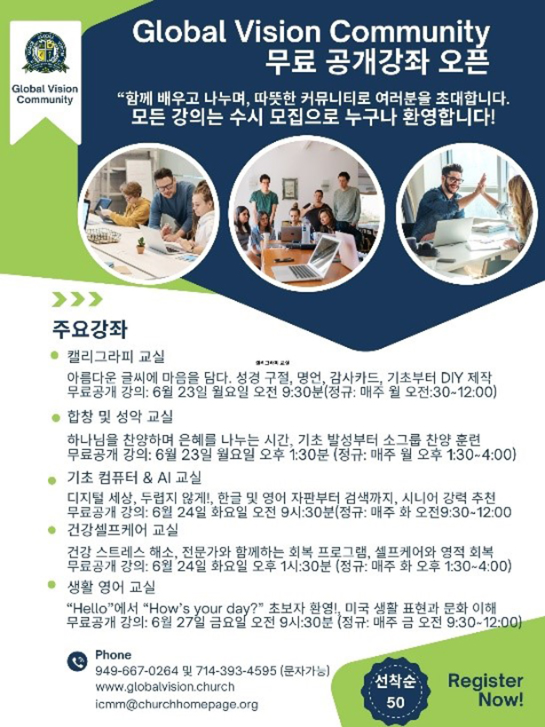 Global Vision, 지역사회섬김 무료 공개 강좌 오픈 > 미주교계뉴스
