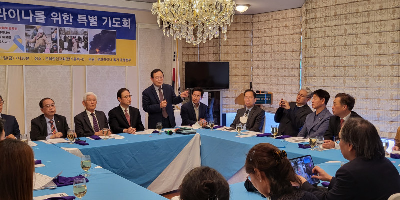 사진(우크라이나돕기운동본부(가칭) 관계자들이 이번 특별기도회의 취지와 성금 전달 방식에 대해 논의, 발표하고 있다.