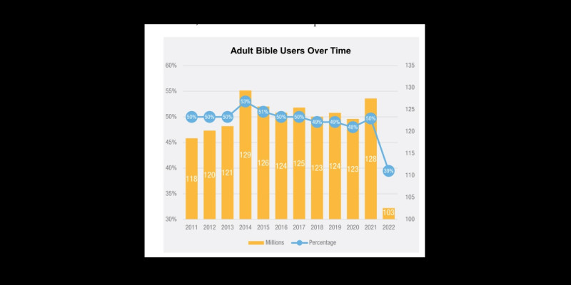 보고서는 성경을 사용한 사람이 지난 2021년 1억 2800만 명에서 2022년 1억 300만 명으로 감소한 것으로 분석했다. 코로나19 팬데믹을 포함해 정치적 양극화 또는 국가 혼란이 성경 읽기 감소에 영향을 준 것으로 추정했다.