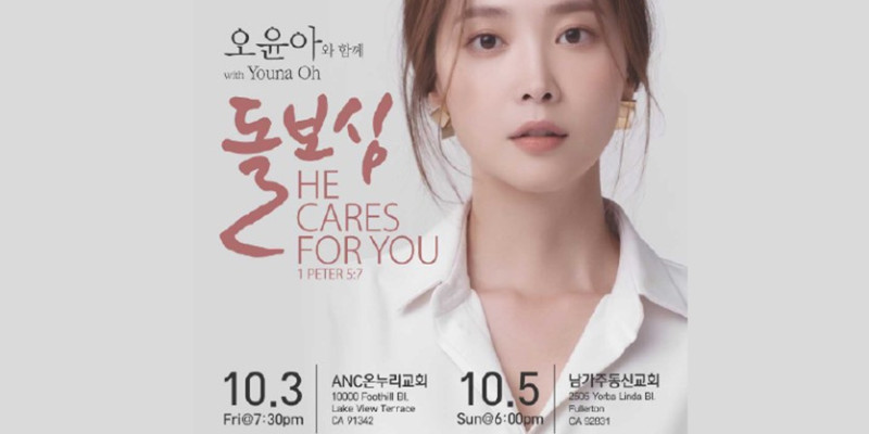 ‘돌보심’(He Cares for You, 베드로전서 5:7)을 주제로 열리는 이번 행사에는 배우 오윤아 집사가 메인게스트로  그의 인생과 신앙 이야기를 나누게 된다.