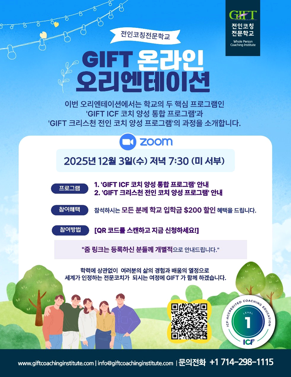 △신청: https://giftcoachinginstitute.com/orientation2025-december