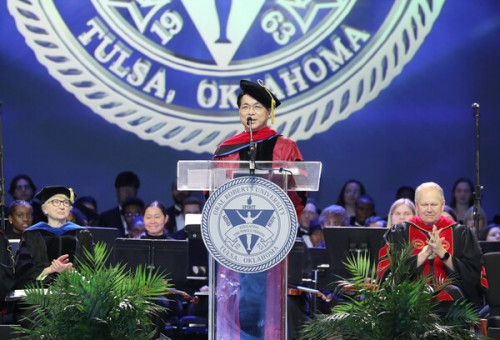 오랄로버츠대학교 졸업예배에서 한국인 최초로 설교를 전한 이영훈 목사.이영훈 여의도순복음교회 목사가 미국 오랄로버츠대학(Oral Roberts University)로부터 명예 신학 박사학위를 받았다. 여의도순복음교회는 지난 30일 오클라호마주 털사에 있는 오랄로버츠대학에서 이영훈 담임목사가 명예 신학 박사학위를 받았다고 1일 밝혔다. 오랄로버츠대는 오순절 신학의 정통성을 이어오고 있는 미국의 대표적 기독 사립대학교로, 빌리 그래함 목사와 함께 20세기 가장 큰 영향을 끼친 종교지도자로 꼽히는 오랄 로버츠 목사가 1963년 설립했다. 이 목사는 세계 선교에 대한 영적 리더십으로 오순절 신학을 발전시킨 공로를 인정 받았다.윌리엄 윌슨 오랄로버츠대 총장은 학위 수여식에서 “이 목사의 영적 운동에 대한 헌신적인 설교가 아시아와 전 세계에 하나님 나라를 전파하는 데 큰 역할을 했다”며 “앞으로도 오순절 운동을 이끌어달라”고 말했다. 이 목사는 “조용기 목사의 멘토였던 오랄 로버츠 목사가 세운 대학에서 학위를 수여 받아 큰 영광으로 생각한다”고 답했다.이 목사는 학위 수여식에 이어 진행된 2022학년도 졸업식 예배에서 한국인 첫 설교자로 나서기도 했다. 학교 측은 그동안 제임스 랭포드 미국 상원의원을 비롯해 존 맥스웰 목사 등 저명 인사를 설교자로 초청해왔다. 이 목사는 대학 머리글자(ORU)를 활용해 졸업생들에게 비전의 메시지를 전했다. 그는 “ORU의 O는 ‘오직 예수’(only Jesus)를 의미한다. 어떤 고난이 다가와도 예수 그리스도와 함께 꿈과 비전을 이뤄나가자”고 권면했다. 이어 “R은 ‘하나님의 말씀 존중’(Respect for the word of God)을 뜻한다”면서 “성경에 순종하는 삶을 살아야 한다. U는 ‘성령 안에서 하나 됨’(Unity in the Holy Spirit)을 의미하며, 오직 성령 안에서 하나가 돼야 한다”고 당부했다.데일리굿뉴스(사장 김명전, www.goodnews1.com)와의 협약을 통해 한국 기독교 소식을 제공합니다.