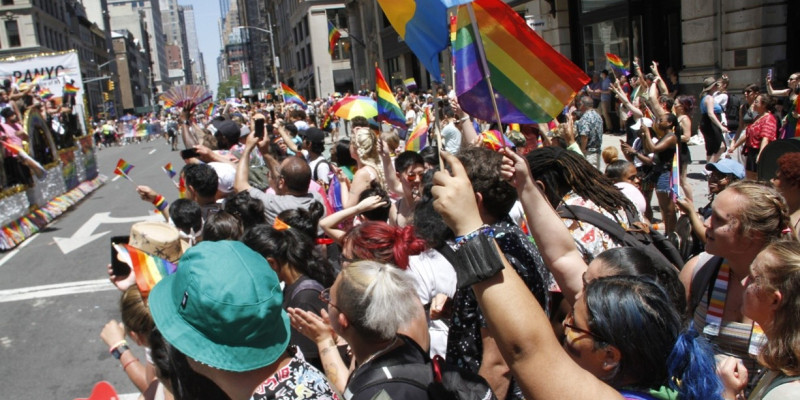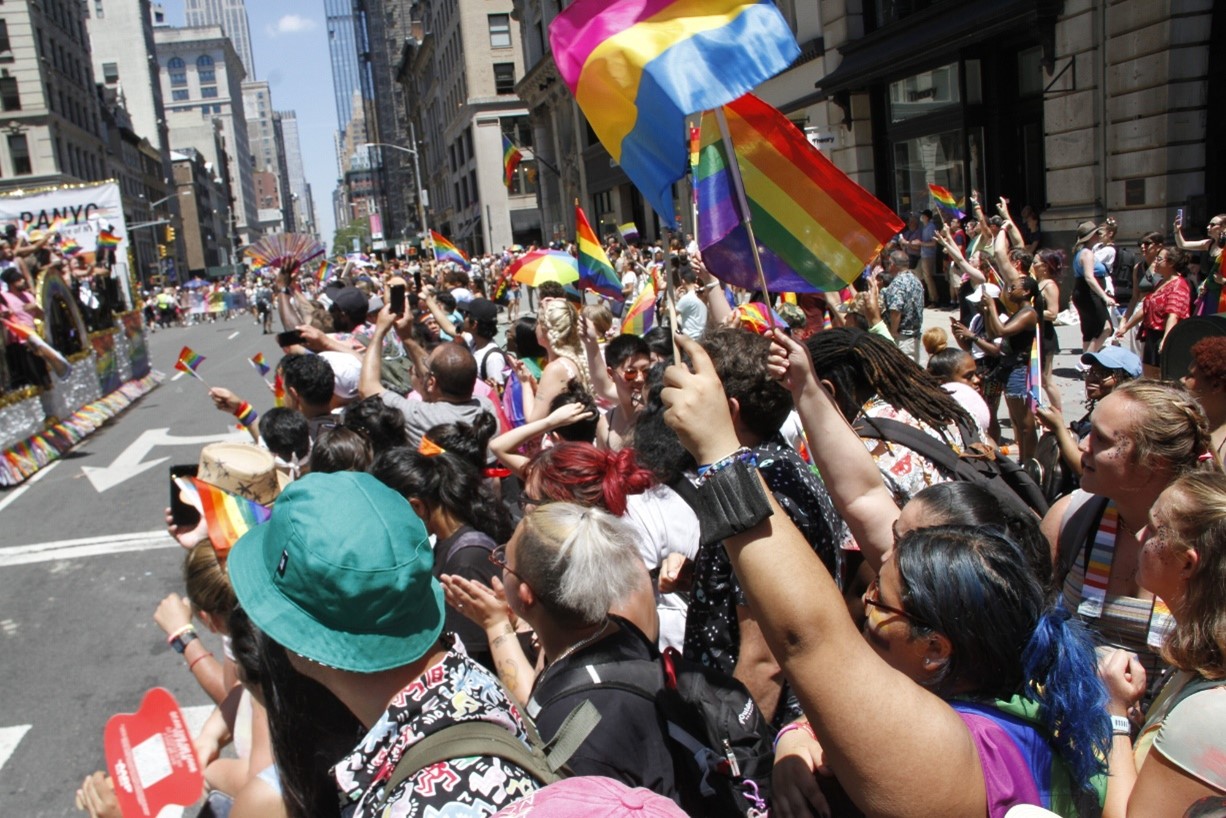 2022년 6월, 뉴욕에서 펼쳐진 프라이드 기념 퍼레디드에서 시민들이 환호하고 있다.