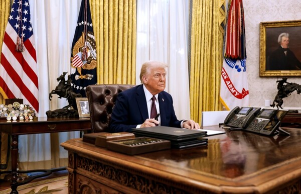 ▲지난 23일 도널드 트럼프 미국 대통령이 백악관 집무실에서 행정명령에 서명하고 있다. (사진출처=NBC News 화면 캡처)