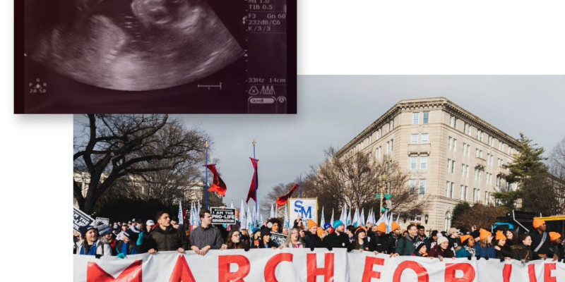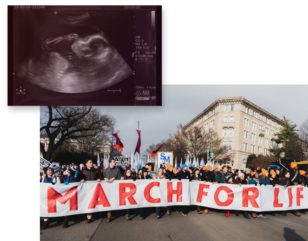 갓 잉태한 태아 사진과 \"생명을 위한 행진\" 집회 모습 (사진 출처 March of Life)